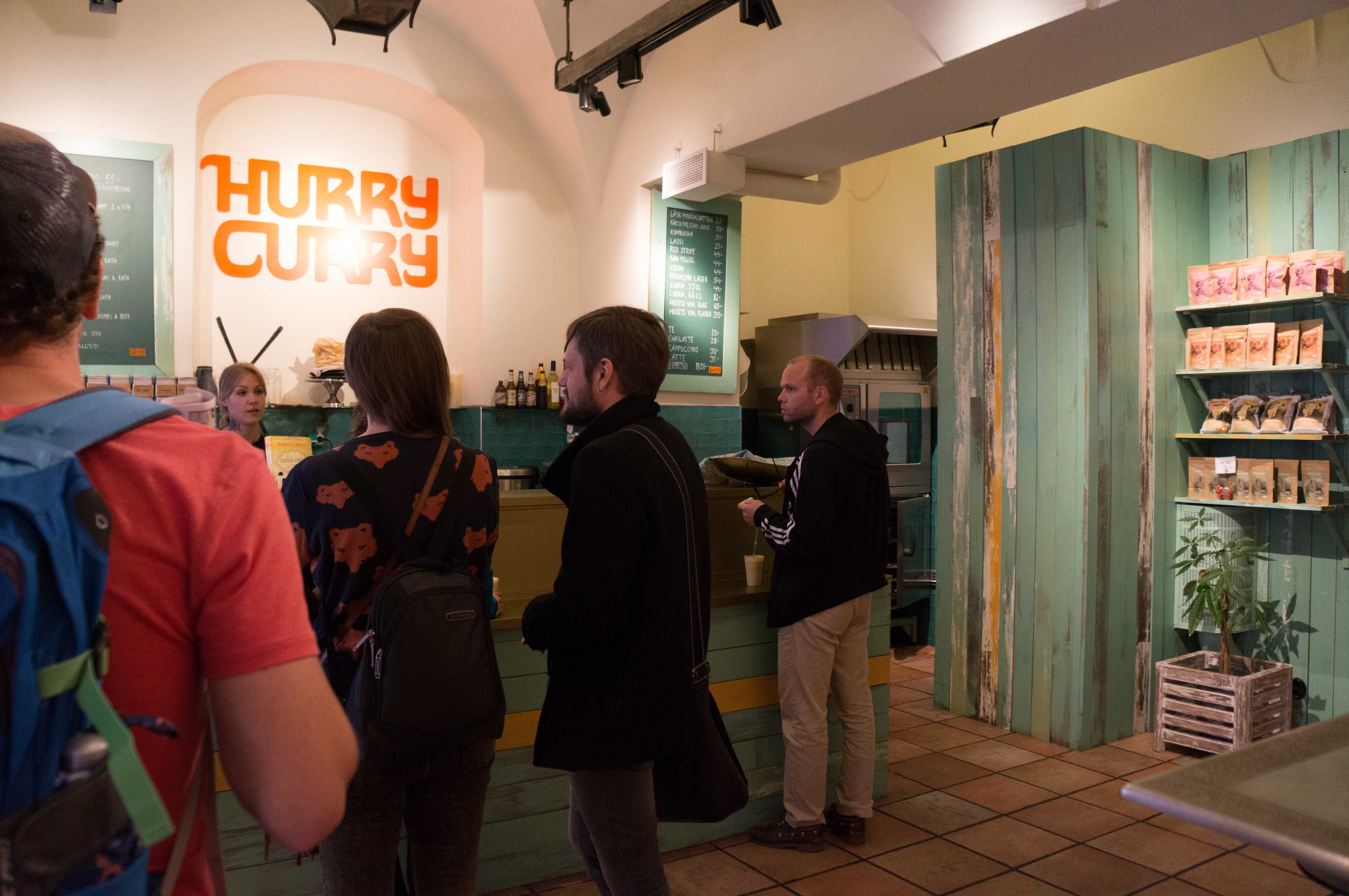 Ein auffälliges Schild mit der Aufschrift „Hurry Curry“ weckt unsere Neugier. Im Nu haben wir leckerste Currys auf dem Tisch und schauen den Leuten nach, die an